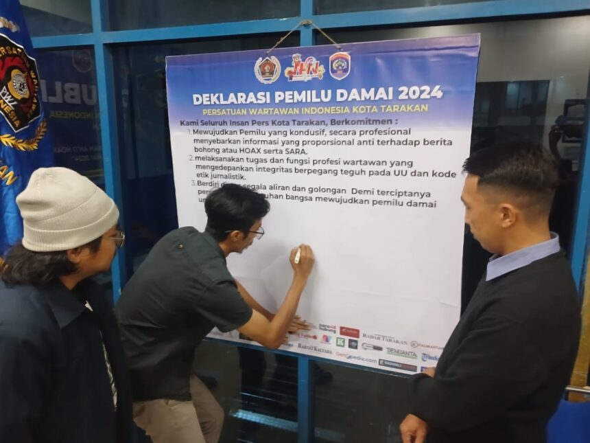 Usai kegiatan, sebanyak 37 wartawan se- Kota Tarakan yang hadir melakukan penandatanganan deklarasi bersama.