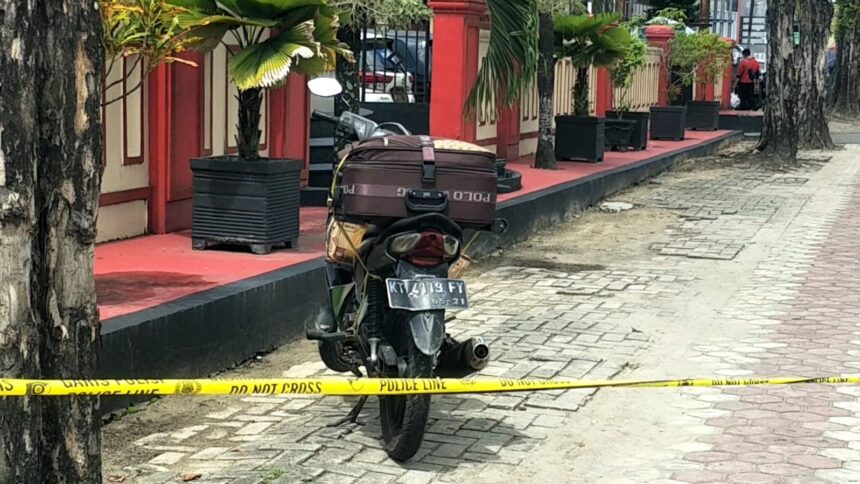 TARAKAN – Satu unit kendaraan roda dua bernopol KT 4119 FY terparkir di depan Polres Kota Tarakan sekitar pukul 11.30 WITA, Selasa (17/1/2023) menghebohkan warga sekitar.