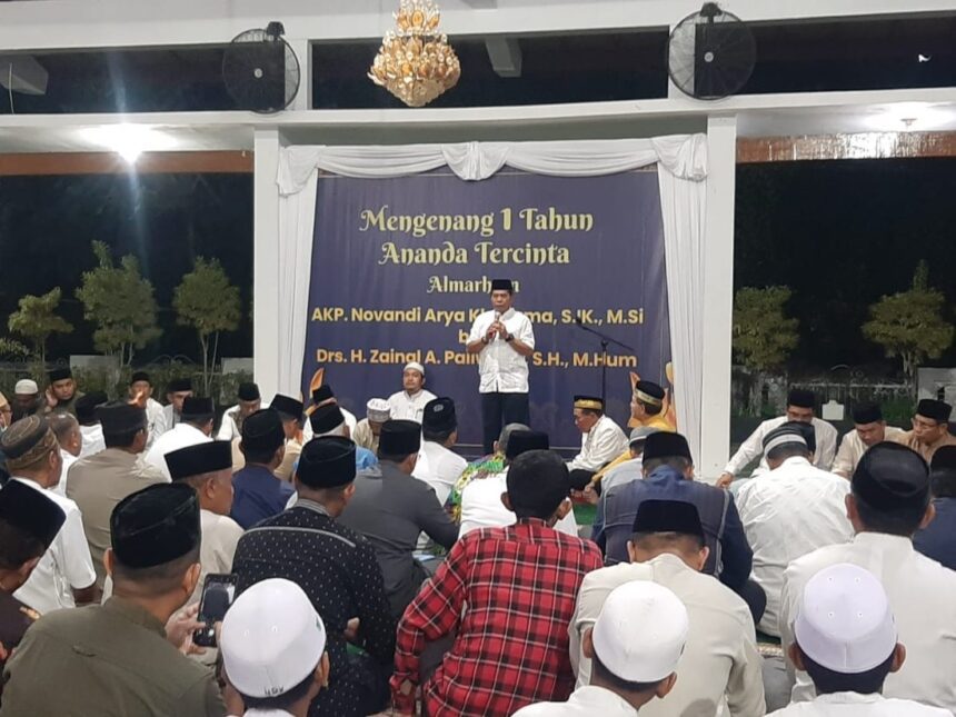 TANJUNG SELOR, JNews.co.id – Usai pelaksanaan salat magrib secara berjamaah di pendopo rumah jabatan (Rujab) Gubernur Kaltara, diadakan pembacaan yasin dan tahlil untuk mengenang 1 tahun atas wafatnya AKP Novandi Arya Kharizma, S.IK., M.Si bin Drs. H. Zainal Arifin Paliwang, S.H. M.Hum.