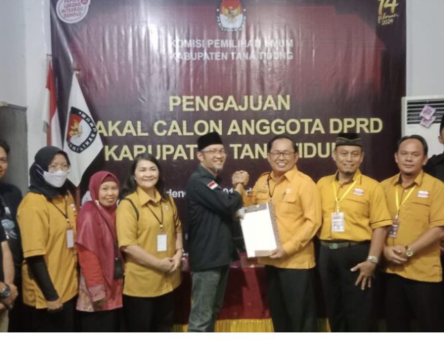 Dengan mengenakan baju kebesaran Partai Hanura rombongan yang terdiri dari 5 orang ini menjadi partai ke 12 yang mendaftar Bacaleg ke KPU Tana Tidung.